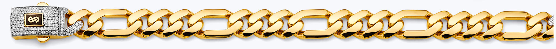 14K 2T 11.5mm Hollow Monaco Figaro 3+1 with CZ Lock Chain